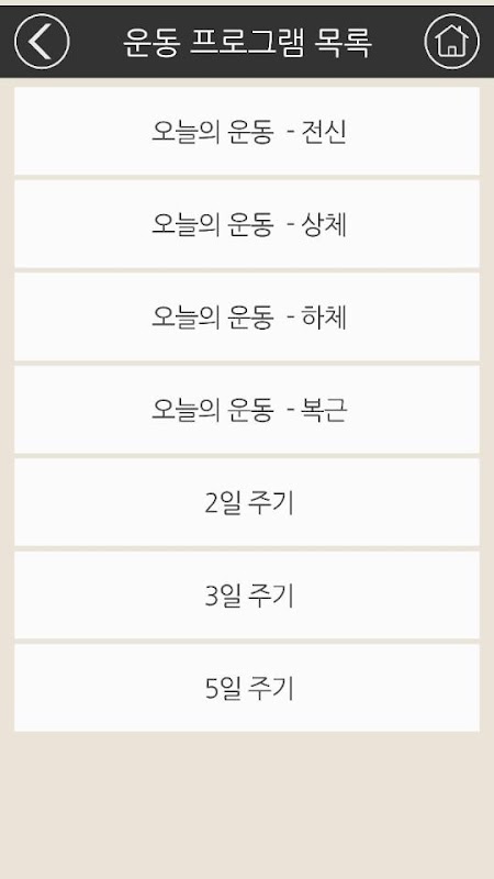 - 운동 리스트 - 운동에 대한 자세한 설명과 주의사항을 운동 영상과 함께 제공합니다. 그리고 하고 싶은 운동을 선택하여 운동할수도 있습니다.
