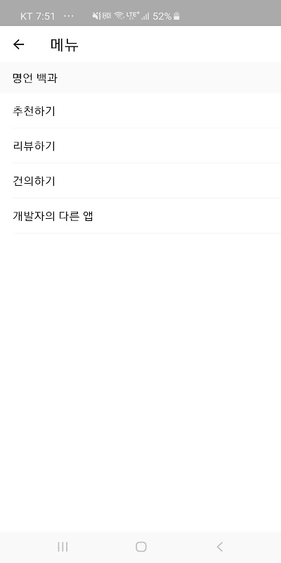 - 명언 백과가 마음에 드시면 친구들에게 메뉴 화면의 추천하기를 눌러 친구들에게 추천해보세요 !