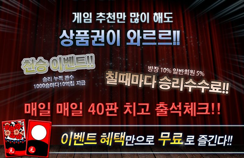 1.新規加入すると3000マンチプ支給! 2.毎日出席チェック時のチップの支払い!皆勤時10オクチプ! 3.ゲームの勝利累積版数が天盛ごとに10オクチプ!