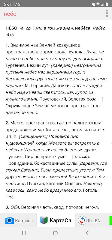 すべての既知のロシア語辞書を迅速に調べることができます。