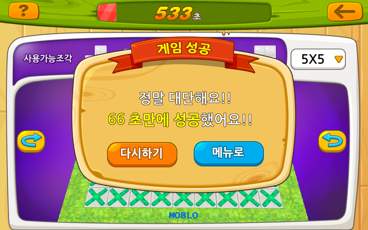 모블로의 블록으로 퍼즐 조각을 만들고 이를 이용하여 도형을 만들며, 아이들의 공간인지 능력 및 논리 수학적 지능 등의 다양한 사고 능력 개발을 이끌어내고 도움을 주는 퍼즐게임입니다!