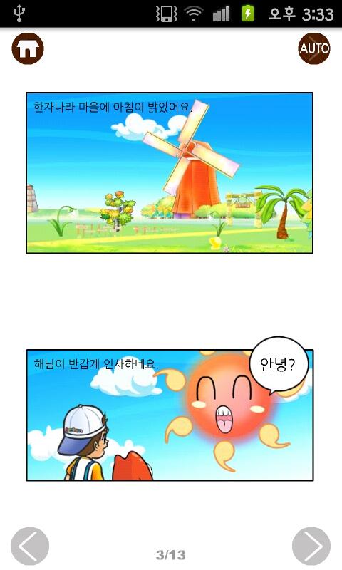 재재, 미미와 함께 떠나는 한자 대 모험! 움직이는 만화를 보며 자연스럽게 8,7급 한자를 배우는 한자 학습 만화 애플리케이션입니다.
