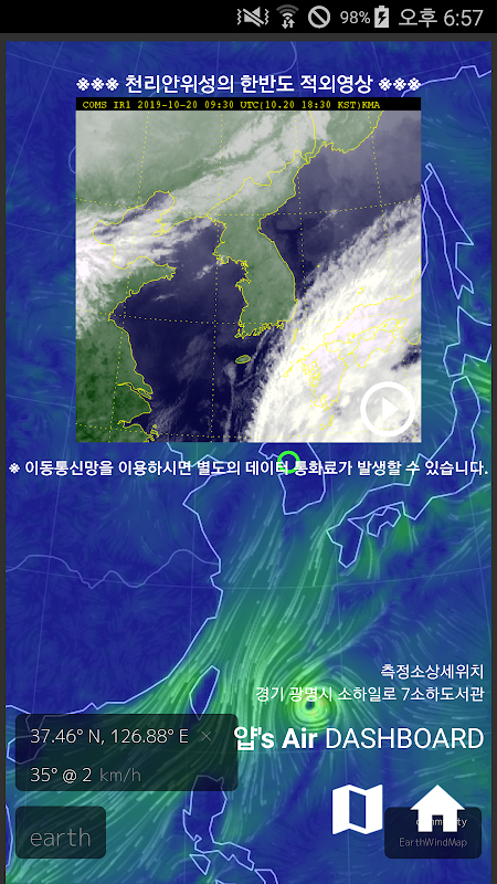 リアルタイム風向マップを参考に統合大気環境指数、微細粉塵、超微細粉塵などの関連関係を推測することができる