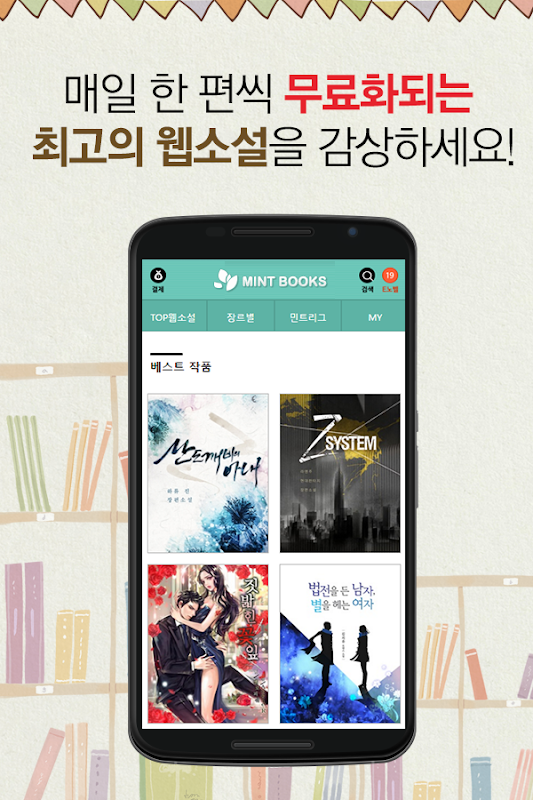 - 작고 답답하고 보기 어려운 모바일 웹소설? 큼직하고 시원시원한 인터페이스로 만나는 독자들을 위한 웹소설 민트북스!