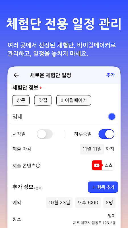 バイラルメーカーは体験団、協賛進行のために出てきたアプリです。