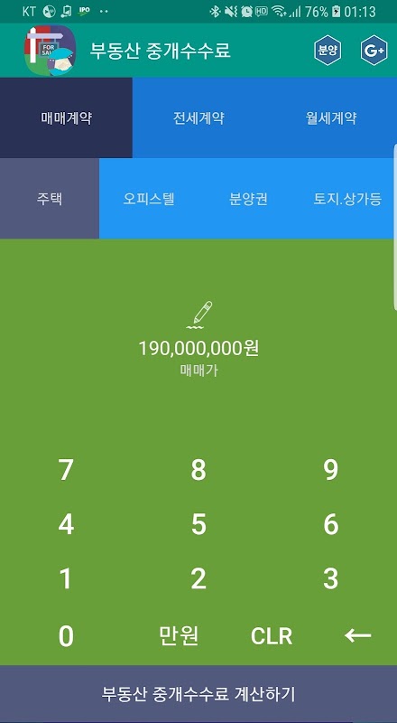 가볍고 쉽고 빠른 인터페이스를 제공하는 부동산 중개수수료 계산기 입니다.