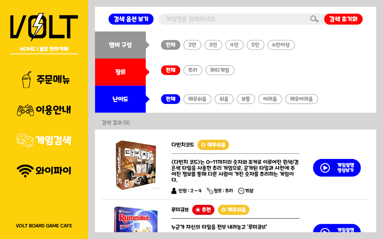 ボルトボードゲームカフェでメニュー注文、ゲーム検索のためのアプリです。