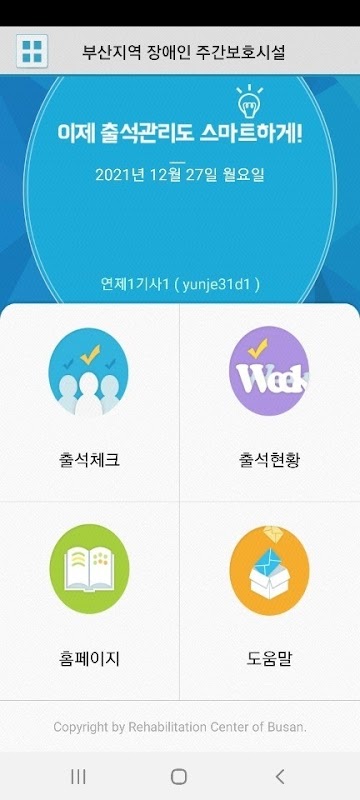 釜山地域障害者週間保護施設電子出結アプリです。