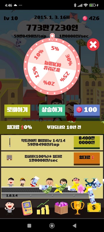 - 金持ちになるのの象徴であるルーレットを回します。魔法棒と家賃の上昇ができますよ。