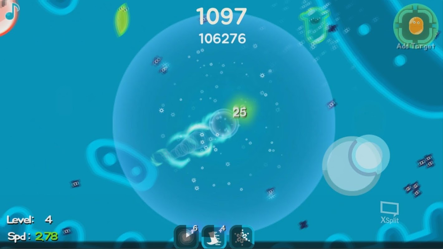 - 시간이 지날수록 점수가 빠르게 오르며 세포를 먹으면 높은 점수를 얻습니다.