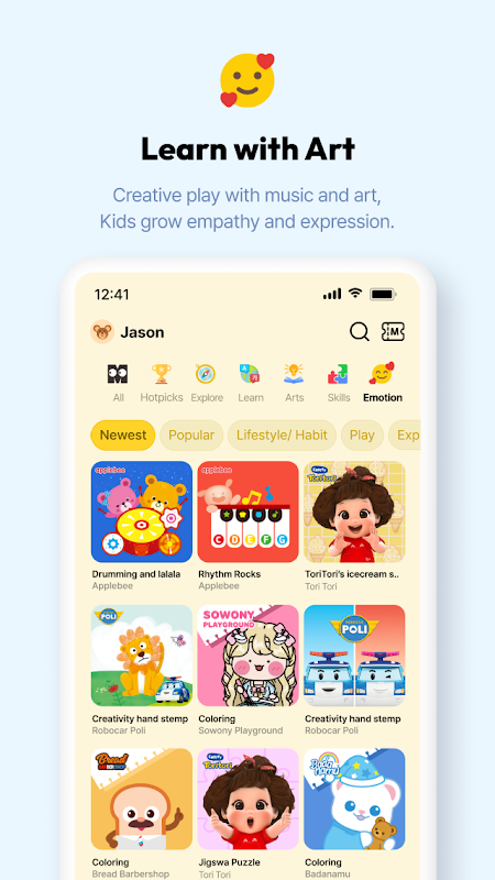 Bread Barbershop、Alphabet Lore、Robocar Poli、BadaNamu、Sowony Playgroundなど、数々の公式デジタルゲームとインタラクティブな学習アクティビティを、未就学児向けに設計されたこのアプリでお楽しみいただけます。