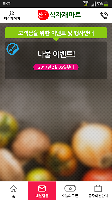 매일매일 할인에 기간별 할인까지 산곡식자재마트의 세일정보를 확인하세요.