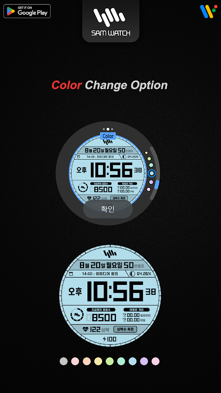 ※スマートフォンアプリは、ダウンロードガイドを説明するウォッチフェイスアプリの追加アプリです。スマートフォンアプリのウォッチフェイスのスクリーンショットと、実際にダウンロードしたウォッチフェイスのスクリーンショットとは異なる場合があります。 SamWatch の Watchface アプリ製品のほとんどには、スマートフォン用のアプリが含まれています。