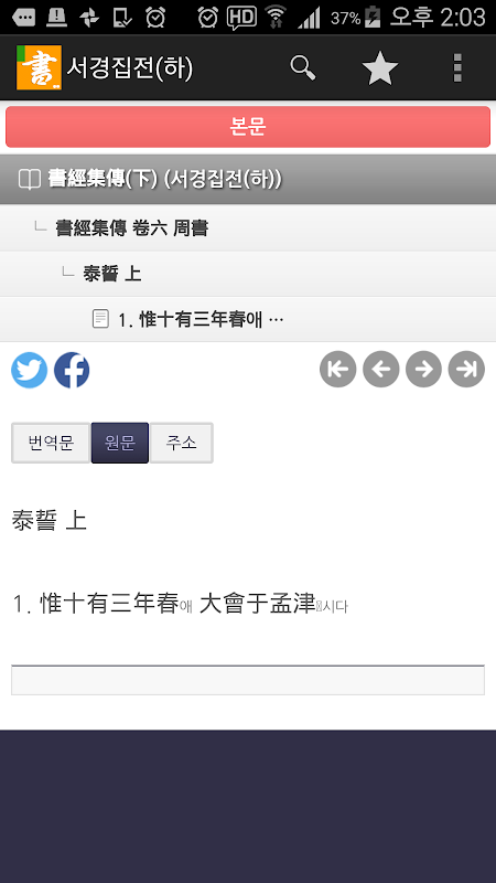 - 伝統文化研究会普及している東洋の古典アプリシリーズの一つである西経集電書經集傳(下)です。
