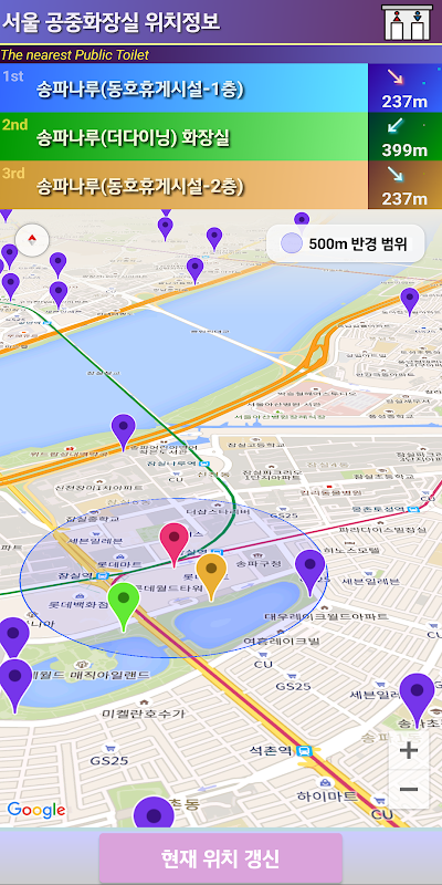 :ソウル市の各地域に設置されている公衆トイレの位置情報を地図に示し示しアプリです。