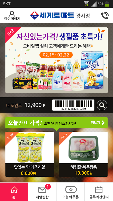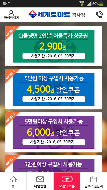 매일매일 할인에 기간별 할인까지 세계로마트 광사점의 세일정보를 확인하세요.