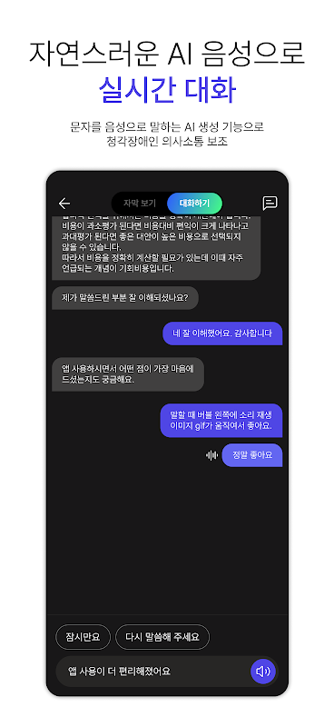 話しにくい聴覚障害者も字幕を見て、便利に話せる会話モードを試してみてください。