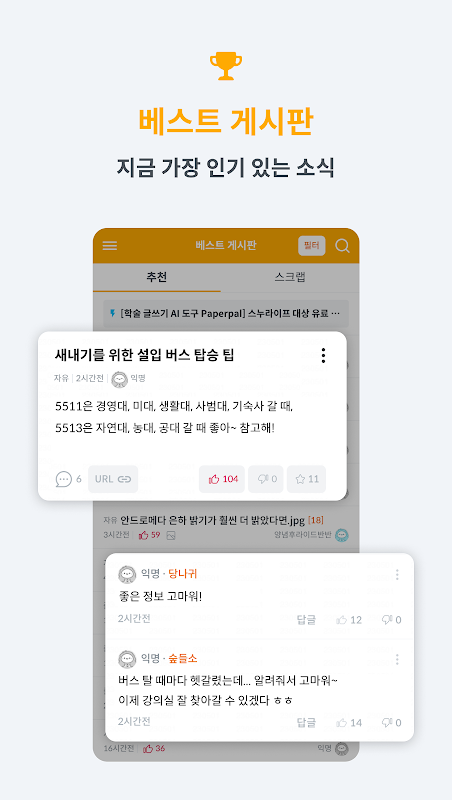 講義評、系譜、蜂蜜のヒントから校内のお知らせまで!ソウル大学生のための必須コミュニティアプリ。