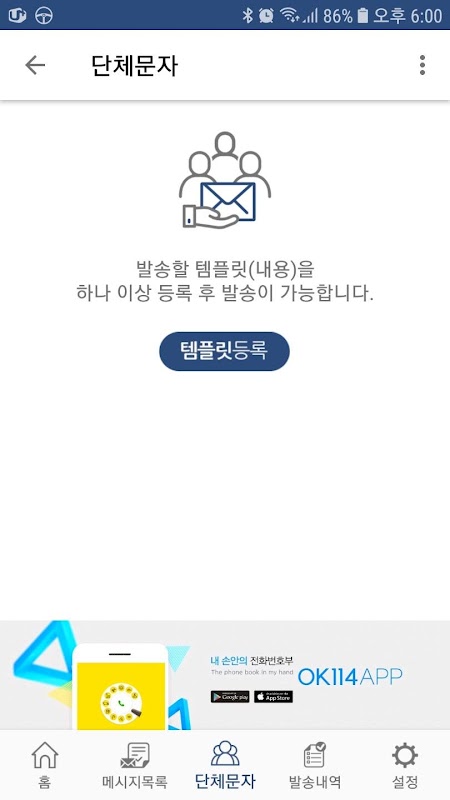 - 발송할 문자메시지 템플릿 등록 후, 단체 문자메시지 발송