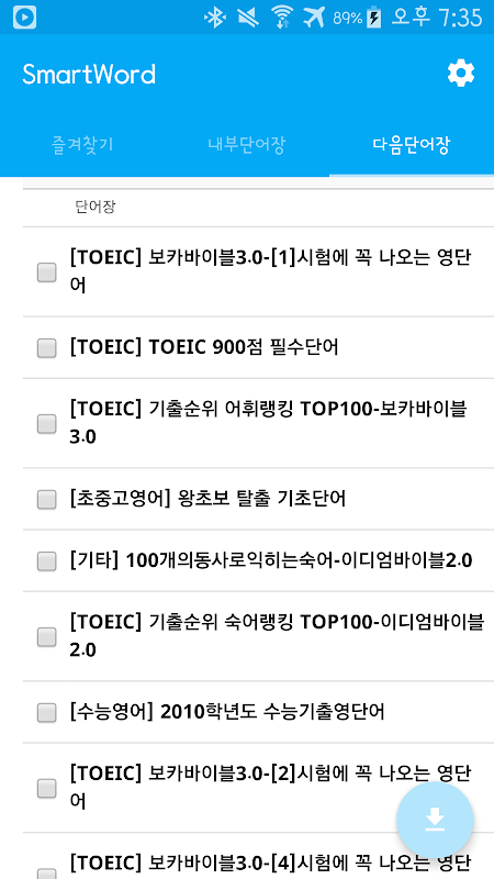 5. 영어,일본어,중국어,한자 등의 다양한 기본 단어장 제공 및 다음 외부 단어장을 통한 단어장 추가 지원