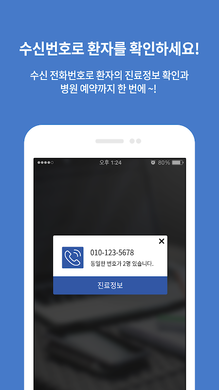 전화 발생시 환자의 진료기록을 언제 어디서나 확인 및 예약 가능,