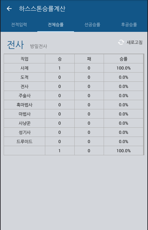 사용자가 간단한 데이터를 입력 후 승률계산을 해줍니다.