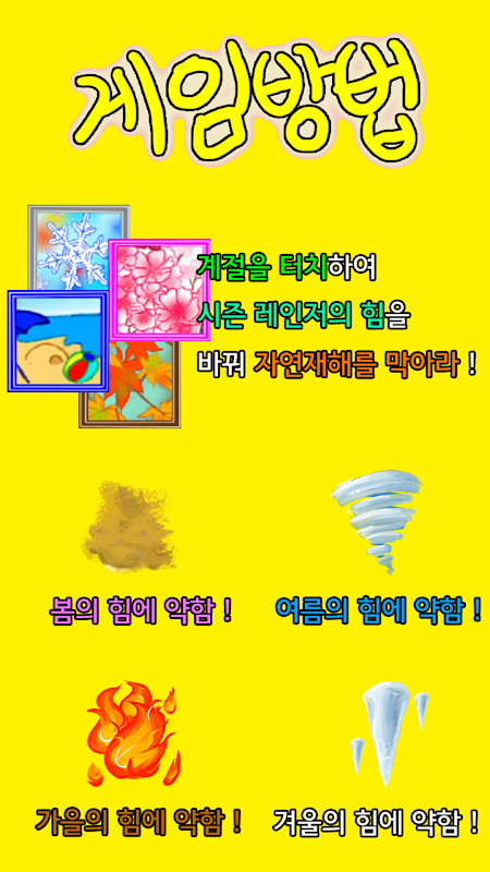 봄, 여름, 가을, 겨울을 알맞은 계절로 바꿔 터치하세요 !