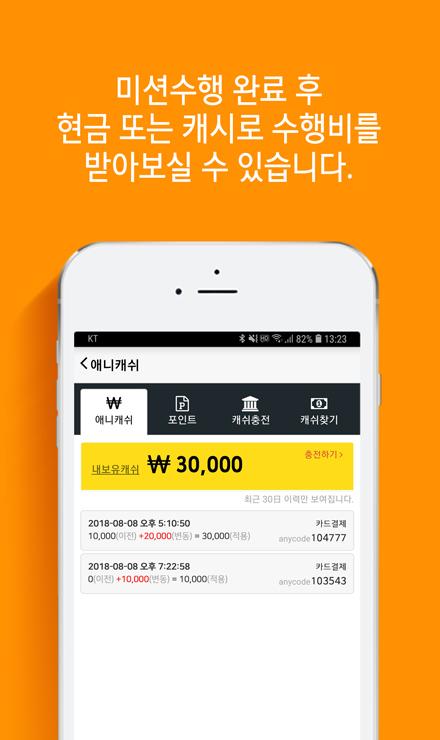 * 애니맨 앱 서비스를 제공하기 위해 이용자의 스마트폰 내에 저장되어 있는 정보 및 설치된 기능에 대한 접근 권한이 요구됩니다.