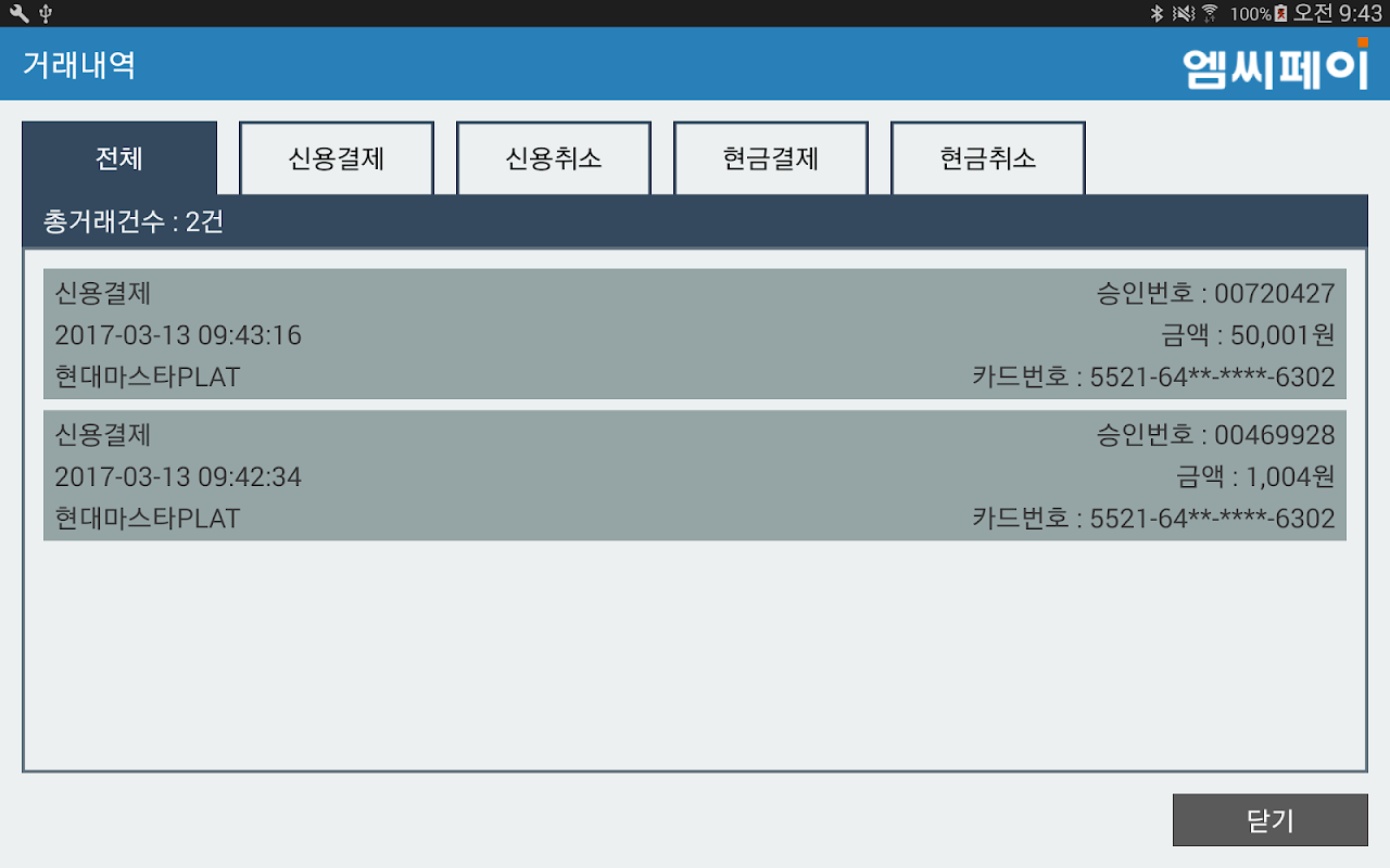 엠씨페이IC(KCP)테블릿용 2.0.1