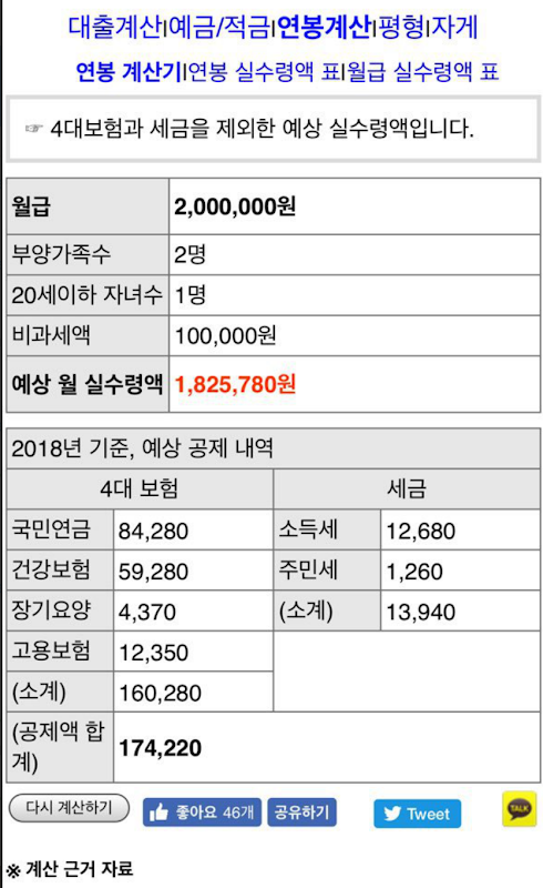 この연봉계산기 - 실 수령액 월급계산기(4대보험계산기) 월급계산기달력について