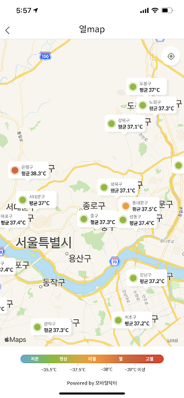 - 앱 사용자가 위치한 지역의 실시간 체온 지도 표시