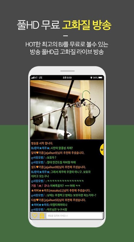 - 실시간으로 채팅을 통하여 방송중 방송자 BJ 와 소통이 가능합니다.