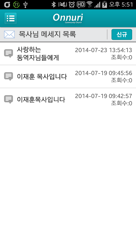 3. 전송된 메시지는 온누리교회앱에서 로그인한 성도 중 관련된 분들은 동시에 수신됨