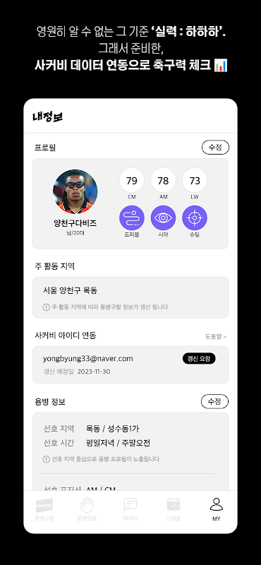 効率的なスカウト提案のために、傭兵プロファイルはサッカービーデータ連携の進行後に登録することができます。