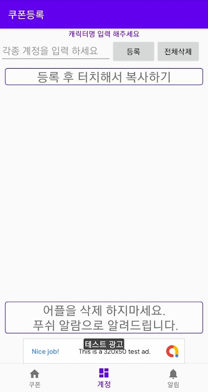 新規「ゲームクーポン」が出たら、プッシュアラームを通じて登録してください。