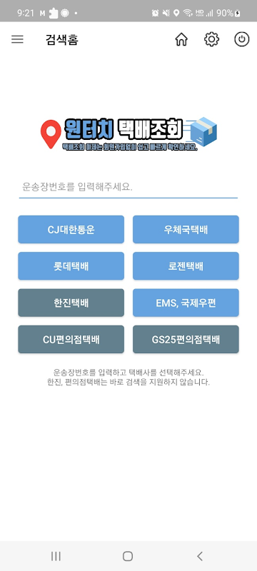 ‘원터치 택배조회’ 앱은 다양한 택배업체의 검색페이지를 통해