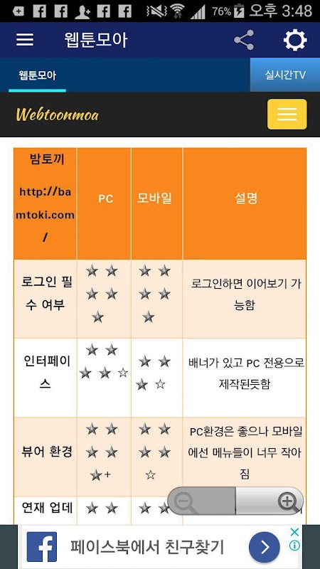 ■ 웹툰모아 주요기능 내용 ■