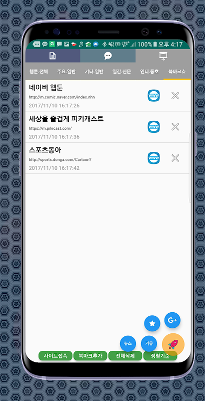 - 북마크하고 퀵 버튼을 통해 나만의 웨툰으로 바로 접속 지원