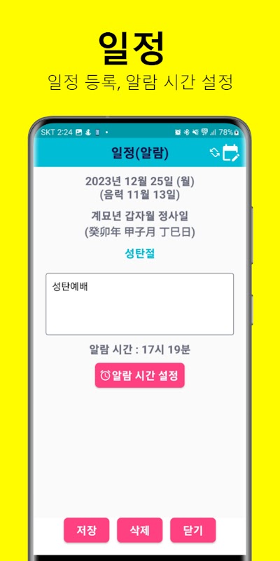 음력달력: 음력, 일정, 메모, 대체휴일, 간지, 절기