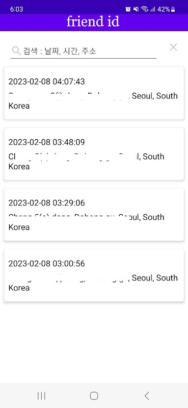 自動的に保存された場所記録は、保存された日付、時刻、住所を検索します。