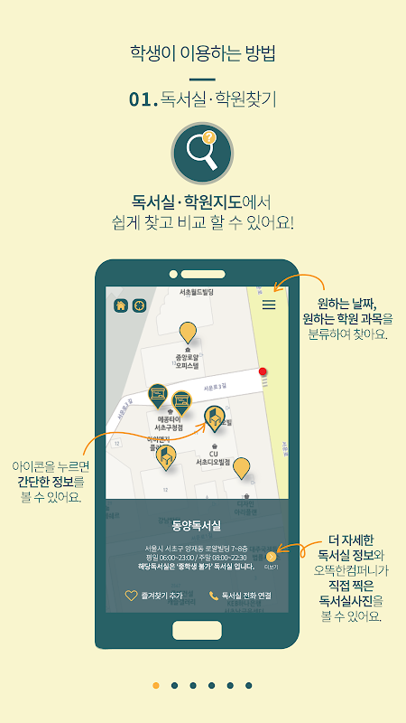 저희 자리똑독은 학생,학부모를 위한 학습공간찾기 교육지도 어플리케이션 입니다.