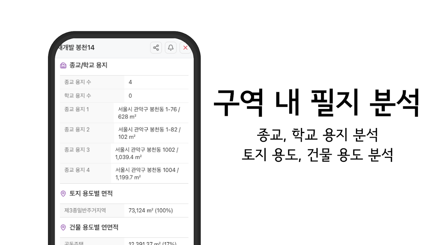 •進捗状況の追跡:事業段階別の進捗状況のリアルタイム更新•地域別の比較:近隣地域に対する投資価値の評価