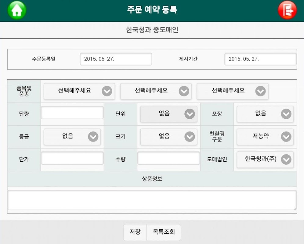 도매시장의 정가수의매매 예약거래 정보 등록 및 확인을 할수 있는 기능을 제공합니다.