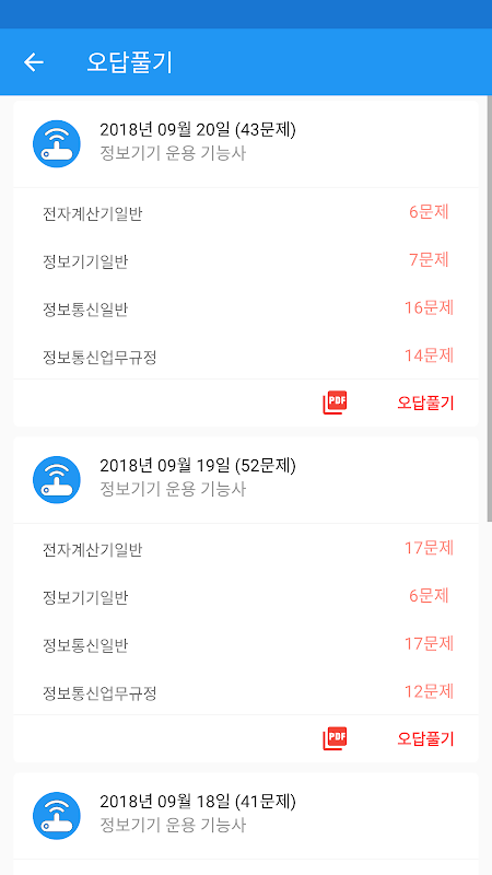 기출문제 - 각 시험별 기출문제를 풀어보는 메뉴입니다.