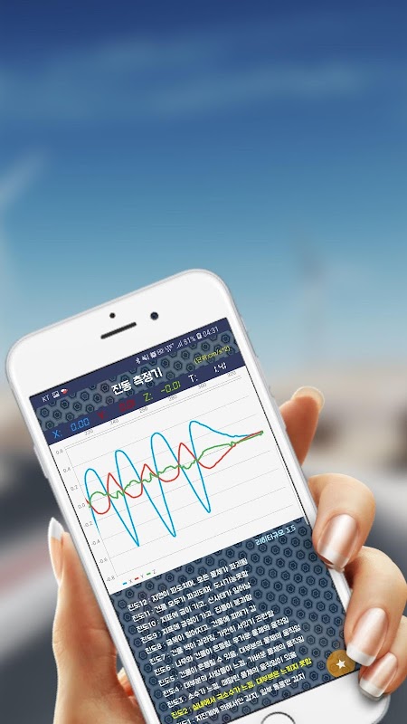 진동/지진의 수치는 리히터 규모와 수정 메르칼리 진도(MMI) 계급을 두가지 기준을 모두 표시하고 있는 가장 정확한 진동 측정기입니다.