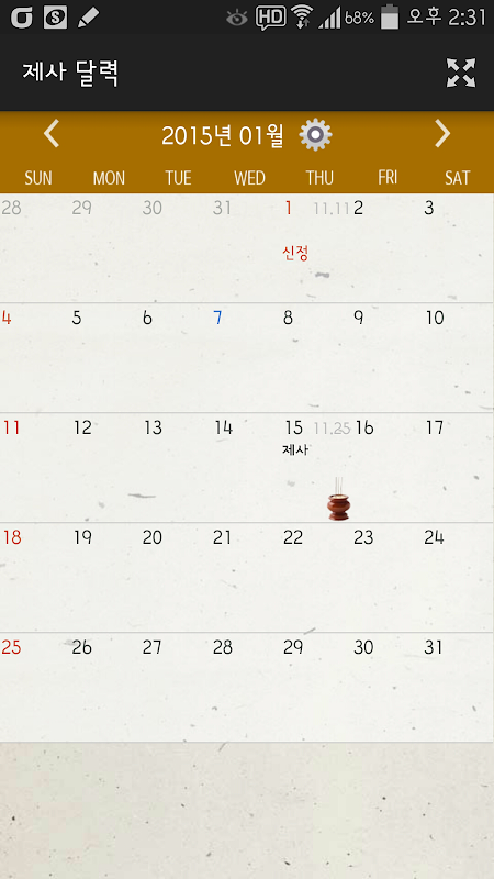 4)祭祀カレンダー:簡単なカレンダーを確認(グレゴリオ/旧暦カレンダー、定休日を表示)と祭祀のスケジュールを登録して、アラームの設定が可能です。祭壇の準備はあらかじめ〜