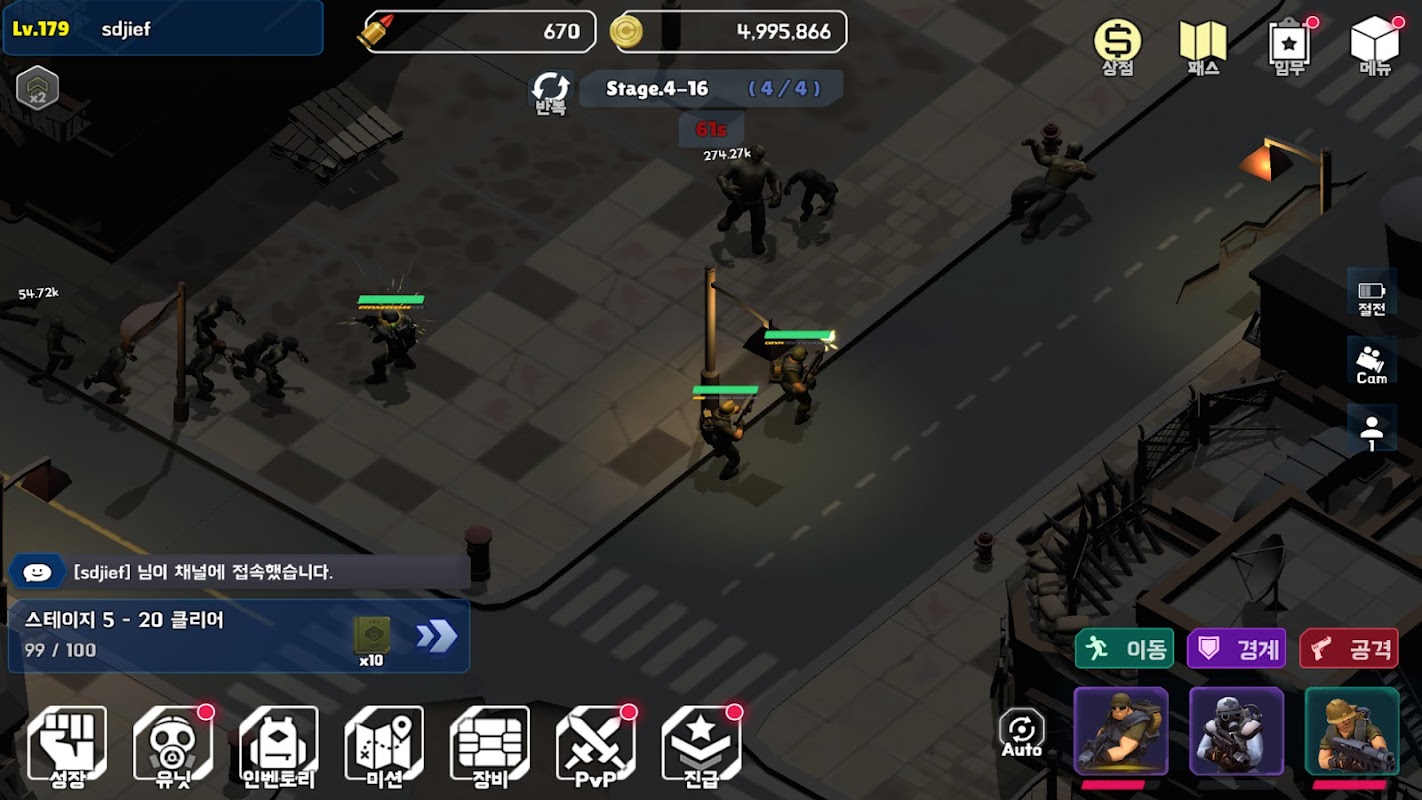 駆け寄ってくるゾンビを倒し、自分のユニットを強化してください。