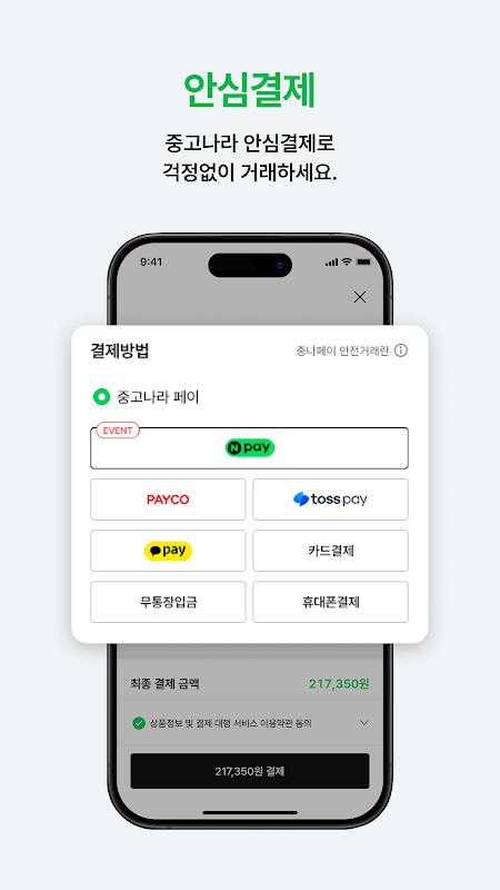 APKPure は署名検証を使用して、ウイルスフリーの 중고나라 - 안심되는 중고거래 APK ダウンロードを保証します。