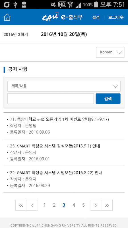 電子出席簿(e-出席簿)のウェブ版(http://att.cau.ac.kr)を利用して作成されたハイブリッドアプリです。