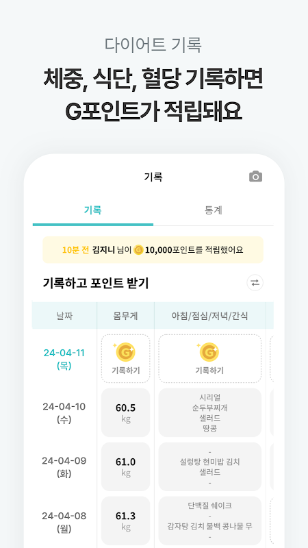 キャッシュ ホームトと食事、体重、血糖記録で毎日健康的な食事をしてください。ホームト、記録、満点で得たポイントで無料ショッピングまで!